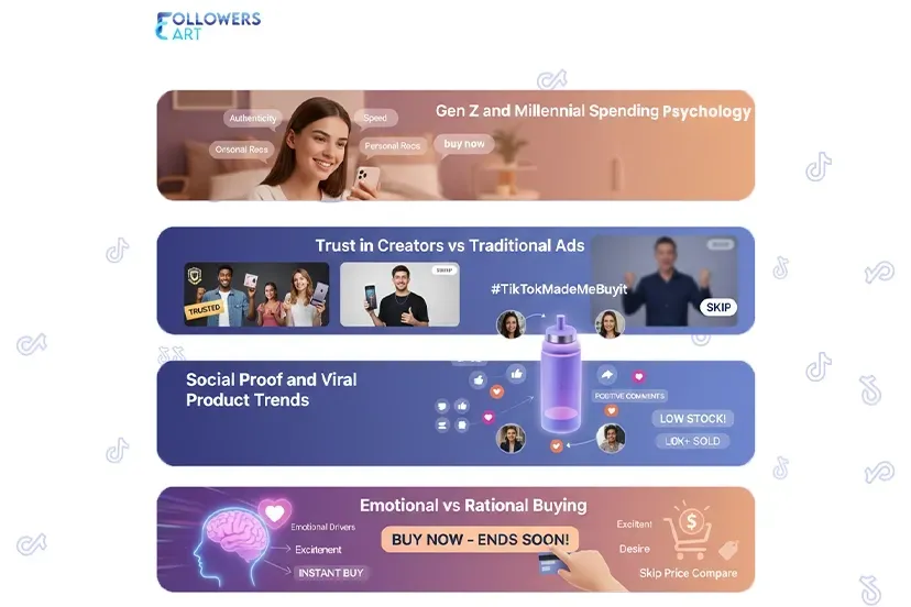 TikTok users make their purchases through emotional drivers, which rule their decision-making process. A video generates excitement, curiosity, and desire, which results in an instant buying decision. The platform's design keeps users in a state of emotional excitement, which leads to unplanned purchases because people find it hard to think logically. Most online shoppers complete their purchases before they start price comparison with competitors.